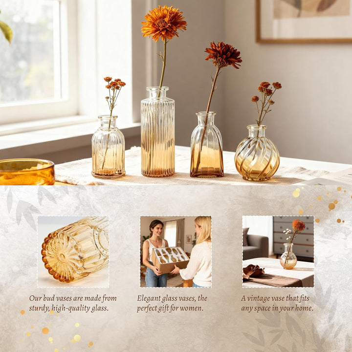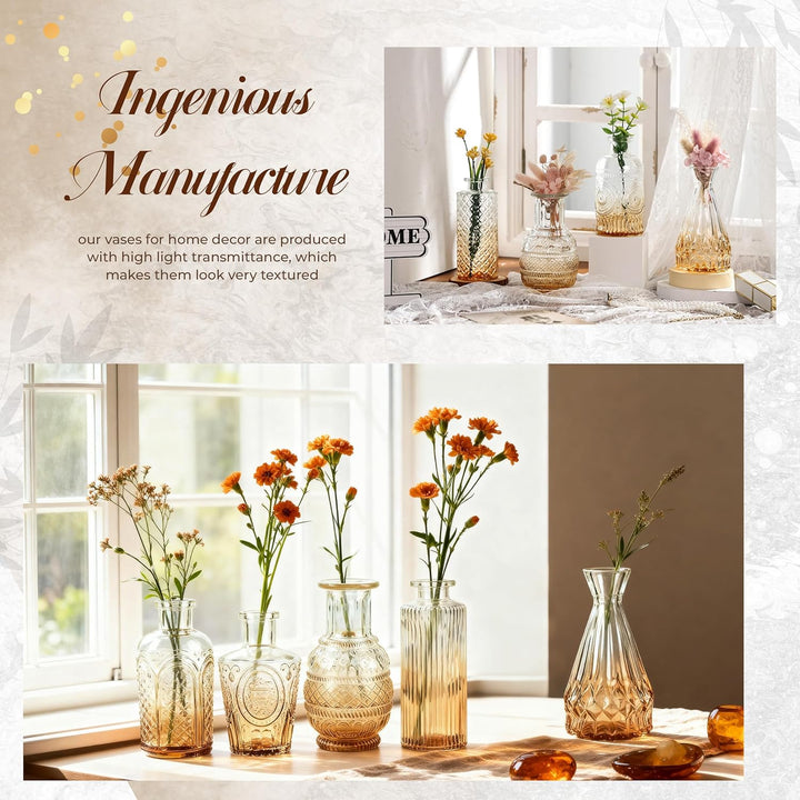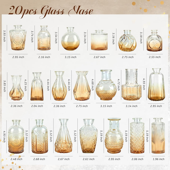 - Vintage Style: You will receive 20 amber glass bud vases. Each flower vase for centerpieces has different sizes and patterns, which can easily combine flowers or decorations according to your ideas