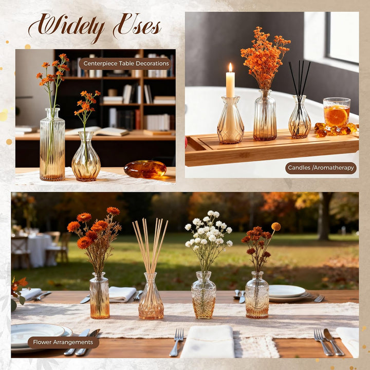 - Widely Uses: These bud vases in bulk can be used to hold fresh flowers, dried flowers, single stem plants, reed diffuser sticks, candles, aromatherapy and other decorations. Create your own home or centerpieces decoration by matching different styles of vases